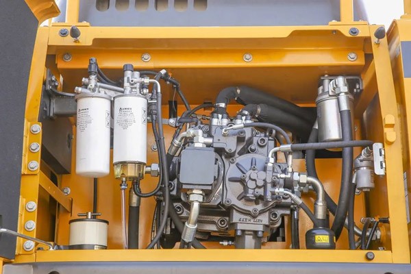 全開式的機罩內(nèi)各保養(yǎng)點集中設(shè)計,更換簡單方便。柴油采用三級油水分離過濾,可以更好地適應(yīng)國內(nèi)各種品質(zhì)柴油。液壓油箱配雙回油濾芯,過濾面積大,回油對濾網(wǎng)沖擊小,保養(yǎng)周期長,液壓系統(tǒng)可靠性高。