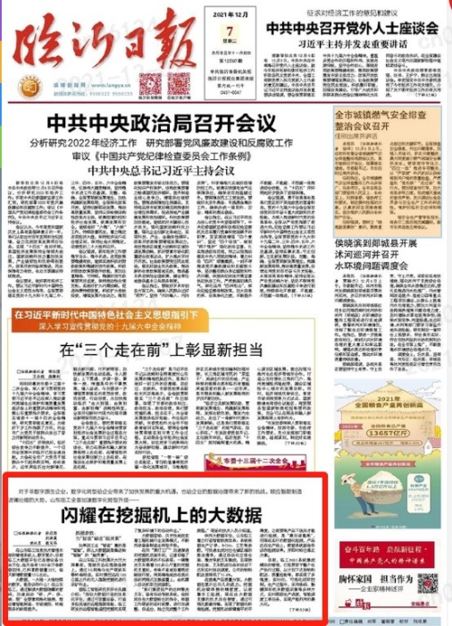12月7日,《臨沂日報》刊登了一篇題為《閃耀在挖掘機上的大數據》的文章,深入介紹了臨工數字化轉型之路,引發了眾多關注。