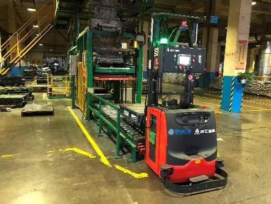 方案優(yōu)化了生產(chǎn)節(jié)拍、物流配送時效,提供了最優(yōu)的車型選型、所需臺量核定。經(jīng)過3個月緊密生產(chǎn)、產(chǎn)品測試、安裝施工,臨工智科將叉車AGV在保障客戶現(xiàn)場生產(chǎn)不間斷的情況下,成功無縫置換,為客戶實現(xiàn)了“機器代人”自動化設(shè)想,替換率70%以上,優(yōu)化運營質(zhì)量。方案通過信息化系統(tǒng)也解決整場調(diào)度,實現(xiàn)了物料的準時化搬運,大幅度提升作業(yè)效率,同時大大避免人工操作的一些問題,如運輸不及時,安全事故等,實現(xiàn)生產(chǎn)作業(yè)指令的快速下達和被立即執(zhí)行。方案集成的計劃執(zhí)行信息化調(diào)度系統(tǒng),打通了與下游企業(yè)內(nèi)部客戶的信息交互,建立信息鏈,生產(chǎn)指令執(zhí)行100%,物流及時配送滿足內(nèi)部客戶需求100%,消除了待料浪費、消極怠工等原有管理難題,全面建立起關(guān)懷職工健康、車間內(nèi)部交通安全的無人化“黑燈工廠”。