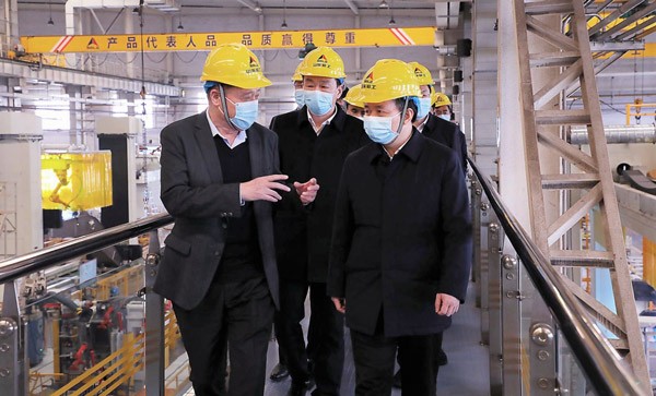 李干杰書記十分關心企業統籌疫情防控和生產經營工作情況。董事長介紹了臨工集團疫情防控的主要做法。面對當前嚴峻的疫情形勢,作為山東省工程機械產業鏈“鏈主”企業,臨工及相關配套企業積極配合當地政府,科學謀劃,統籌安排,通過采取全員核酸檢測、“點對點”上下班、集中安排食宿等措施,在做好疫情防控各項工作的同時,保證了企業生產經營的正常進行,為確保全省工程機械產業鏈供應鏈的穩定發揮了積極作用。