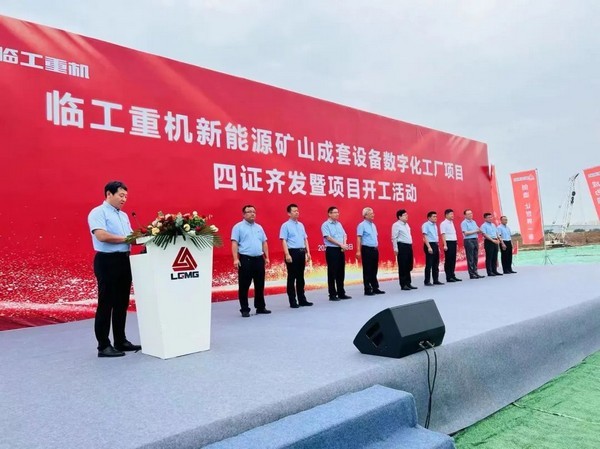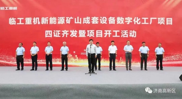 2022年8月28日,臨工重機新能源礦山成套設備數字化工廠項目四證齊發暨項目開工活動在泉城濟南隆重召開,濟南高新區黨工委副書記、管委會常務副主任任廣鋒,黨工委委員、管委會副主任張磊,臨工集團總裁、臨工重機董事長于孟生,臨工重機總經理支開印,天元集團副總裁、濟南區域公司總經理高雷等領導、嘉賓出席活動,共同見證這一里程碑事件,標志著臨工重機數字化轉型邁出了堅實的一步。活動由臨工重機黨委副書記、工會主席房立友主持。