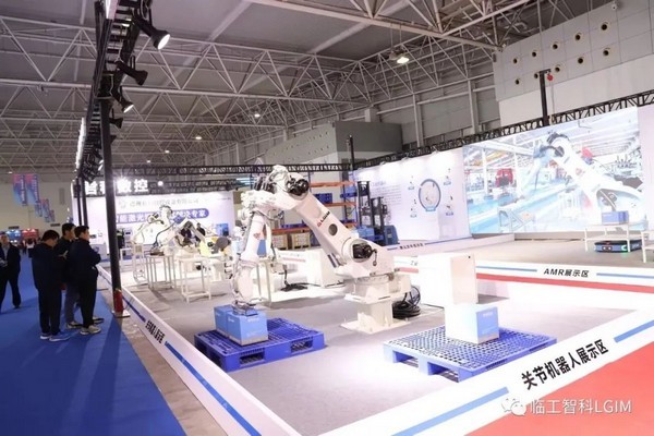 臨工智科多方位的展示了關(guān)節(jié)機(jī)器人、無人叉車、AMR的作業(yè)場景